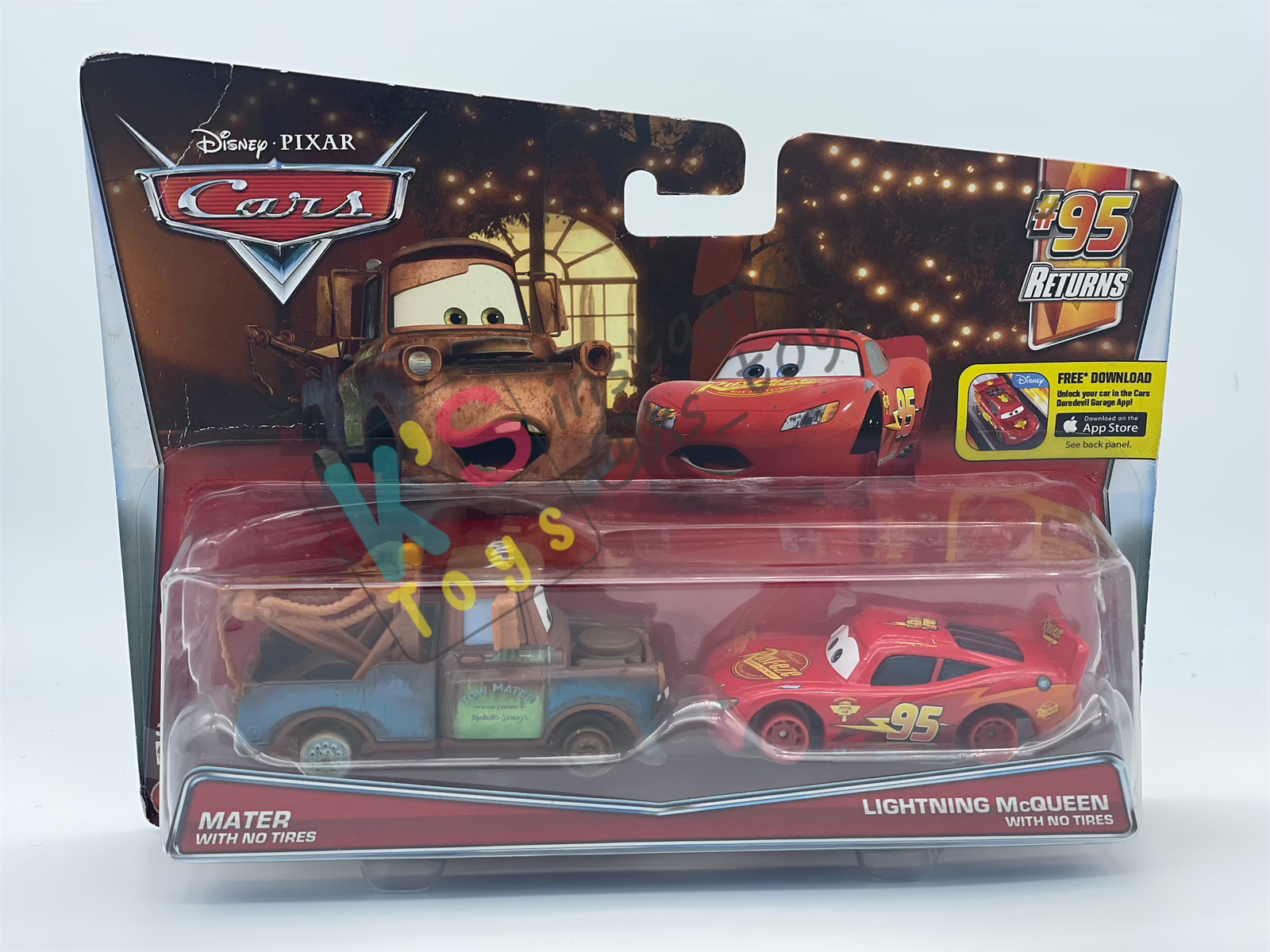 Disney Pixar Cars 1:55 by Mattel 2-Pack MATER WITH NO TIRES AND LIGHTNING MCQUEEN WITH NO TIRES - 95 RETURNS SERIES - BNIP