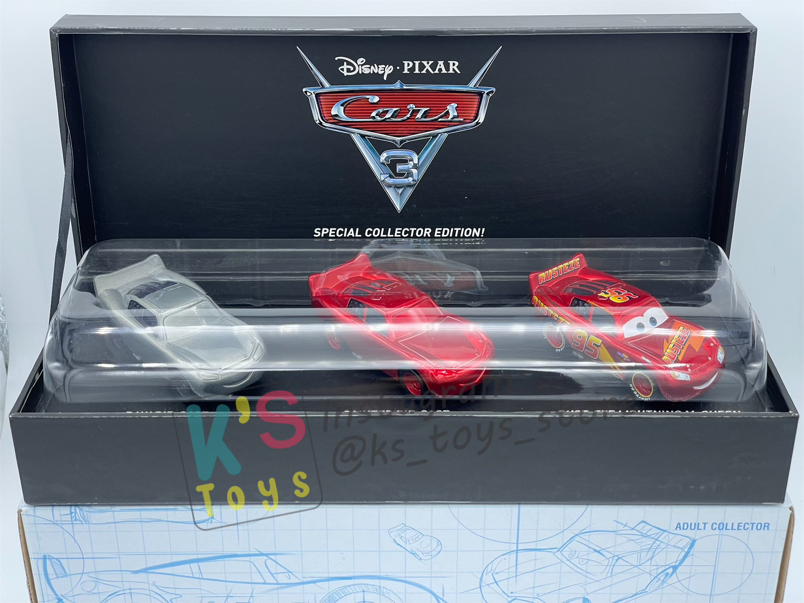 DISNEY PIXAR CARS BY MATTEL, EXCLUSIVE D23 2017 SDCC 2017 RAW LIGHTNING , PAINTED LIGHTNING AND RUST-EZE LIGHTNING MCQUEEN WITH METALLIC FINISH - BNIB