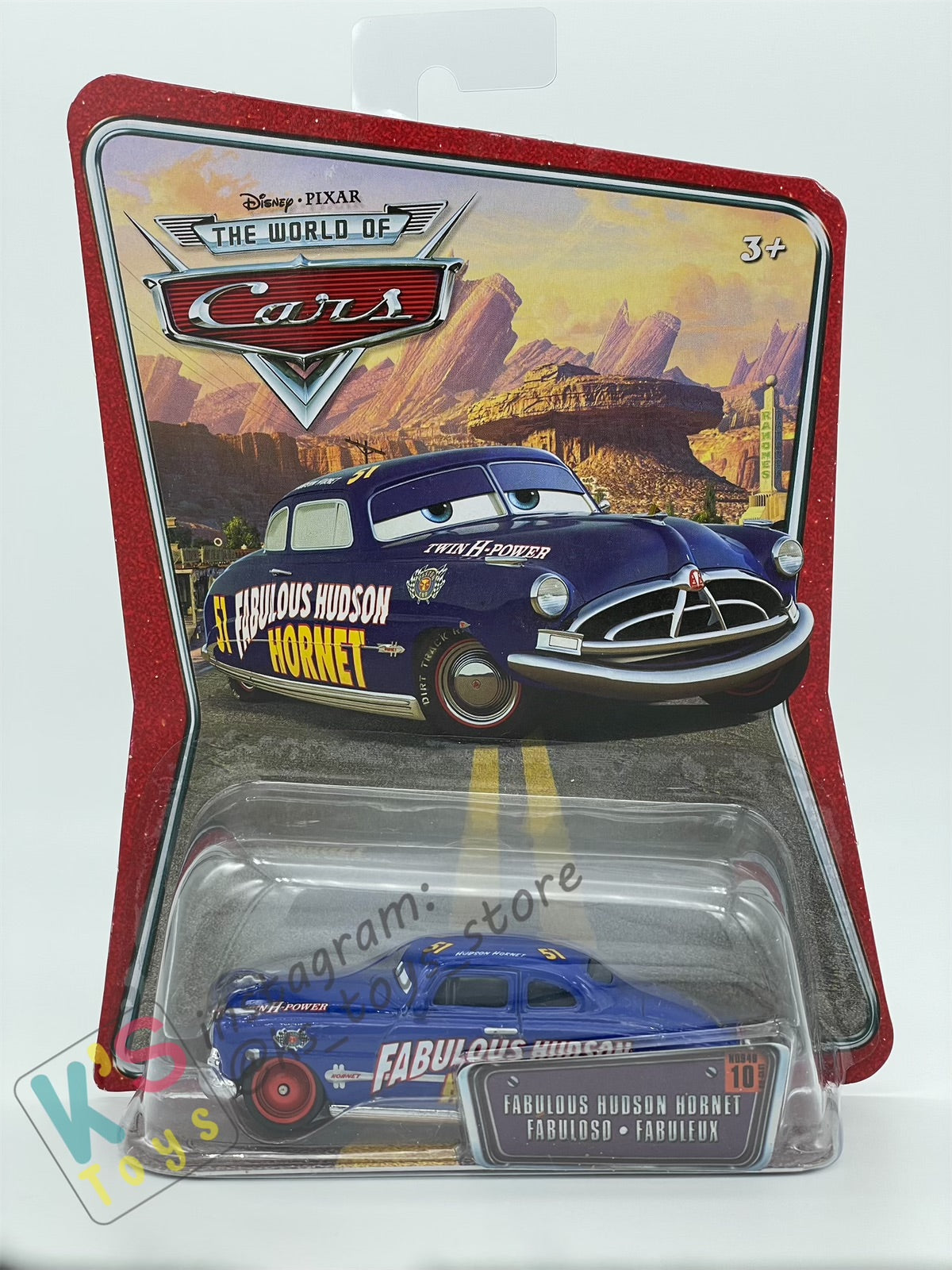 DISNEY PIXAR CARS BY MATTEL, THE WORLD OF CARS SERIES -FABULOUS HUDSON HORNET WITH RED RIMS #10 - BNIP